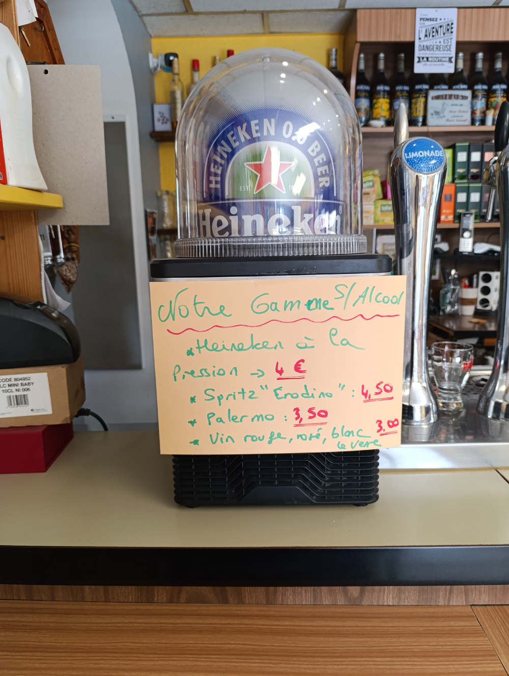 Bière pression Heineken, le SPRITZ "Crodino", Palermo, nos vins rouge, blanc et rosé…Sans alcool, la fête est plus folle ^^